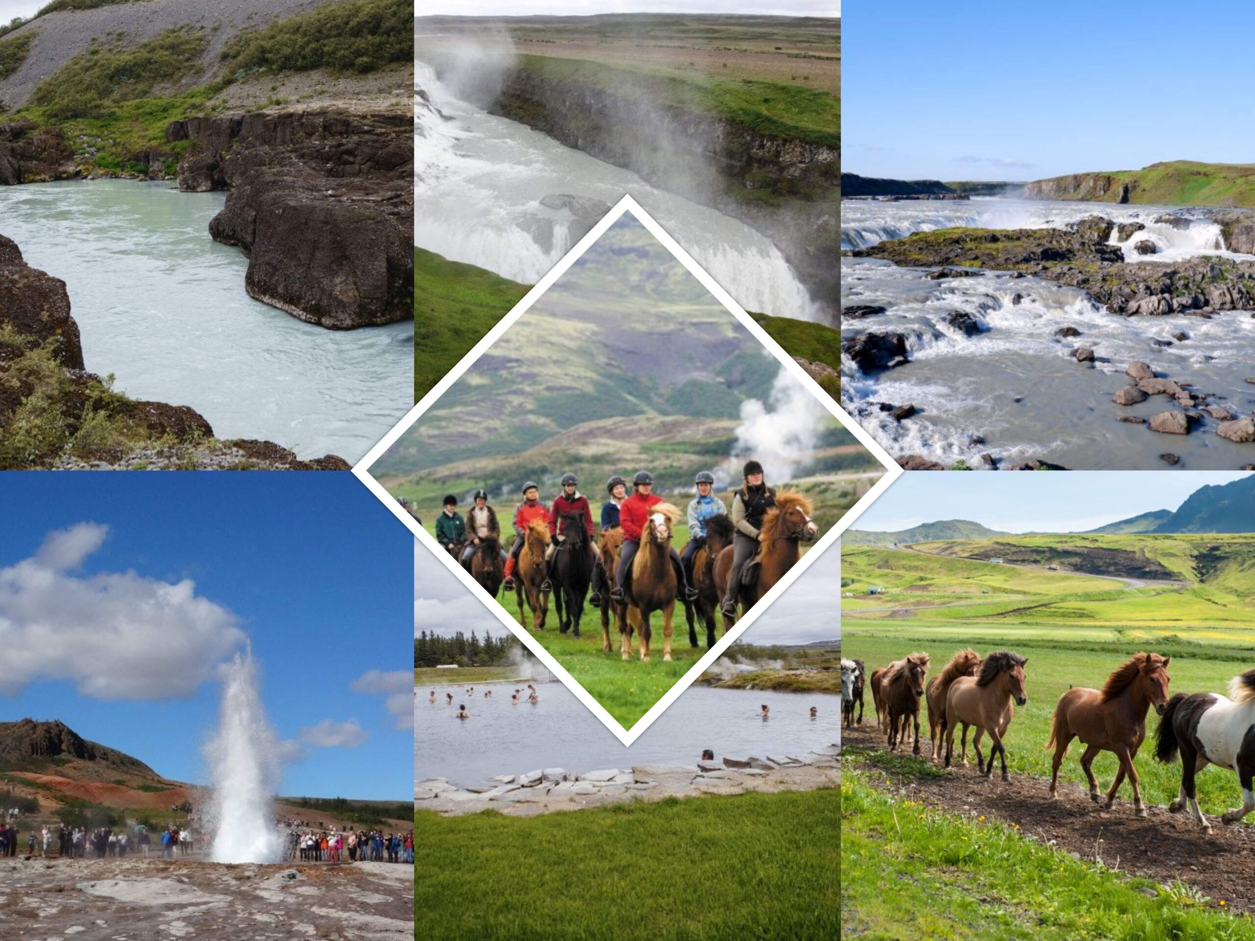 Paardrijdtrektocht op IJslandse paarden in het zuiden van IJsland bij de warm water bronnen van Geysir en de Gullfoss en Golden watervallen. Deze tocht is door CNNgo genomineerd als een van de beste trektochten te paard ter wereld.