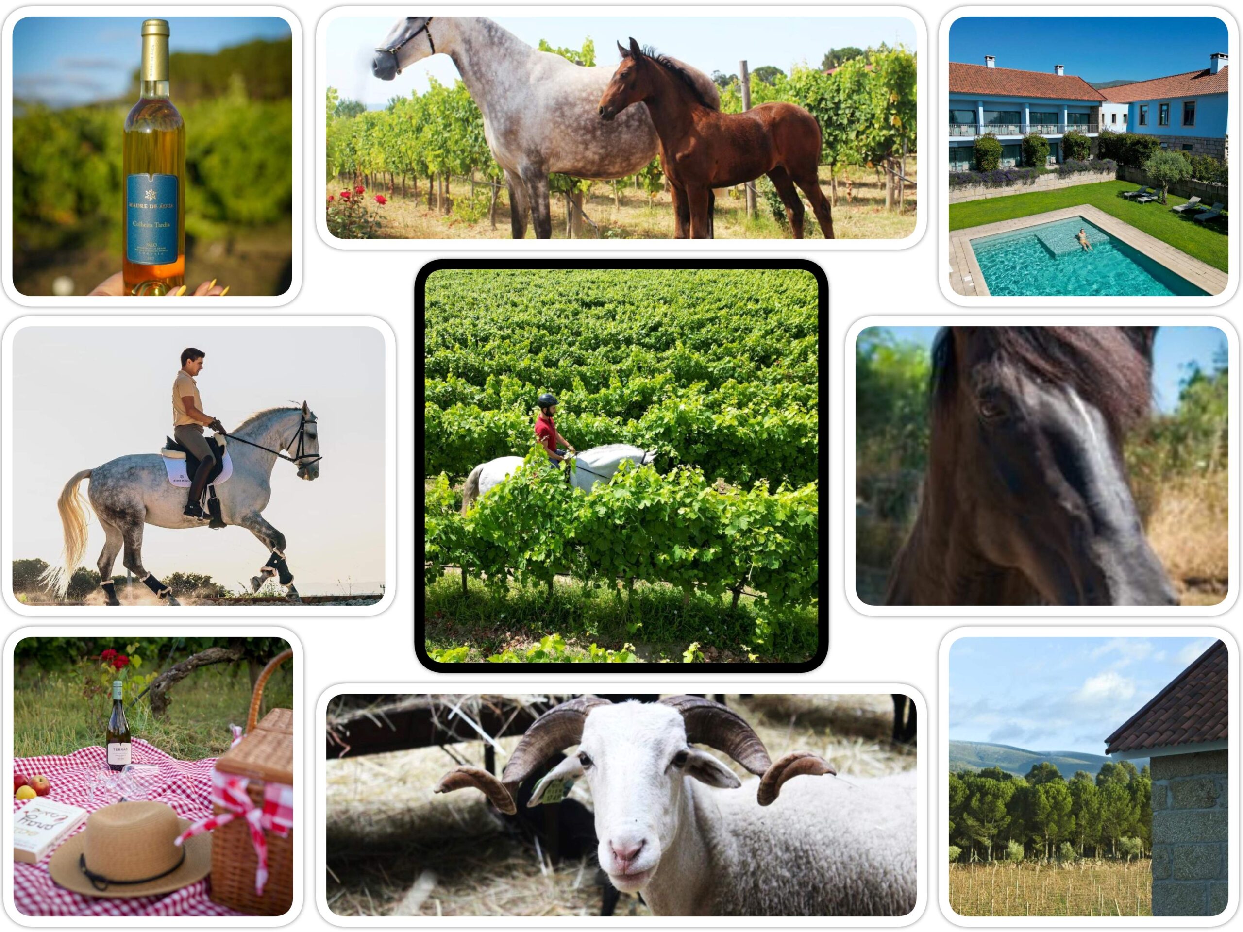 De Madre de Água’s Stal en Fokkerij spruit voort uit de liefde van de eigenaren Luís Gonçalves en Lurdes Perfeito voor dieren. Ze begonnen met drie volbloed Lusitano merries, maar gingen al snel serieus fokken en succesl deelnemen aan wedstrijden. Met twee door de Portugese Ortigão Costa goedgekeurde hengsten kwam Nuno Carvalho, professionele ruiter die de paarden dressuurmatig traint. Luis en Lurdes lieten een mooie overdekte rijbaan bouwen. Het landgoed zelf had niet veel nodig. Een droom van een landgoed met 16 hectare wijngaarden, olijfbomen, eikenbomen, kastjanjebomen, pijnbomen, eeuwenoude kersenbomen en rotsformaties uit de tijd dat er nog gletsjers in Portugal waren. De gletsjers resulteerden in veel water waardoor er nog vele waterputten zijn en daarom heet de quinta Madre de Água, moeder van het water.