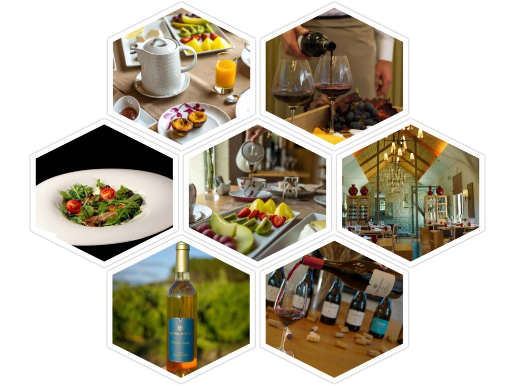 Quinta de Madre is niet alleen een hotel, maar tevens wijnlandgoed met een eigen wijnlabel Dão wijnen, eigen Serra da Estrela kaas, olijfolie en kwaliteitsjam. De inwendige mens zal hier niets tekort komen. Alles op natuurlijke basis en van eigen bodem c.q. dieren. Het restaurant van Madre de Água – Serra da Estrela - heeft een traditionele cuisine met gerechten uit de regio.