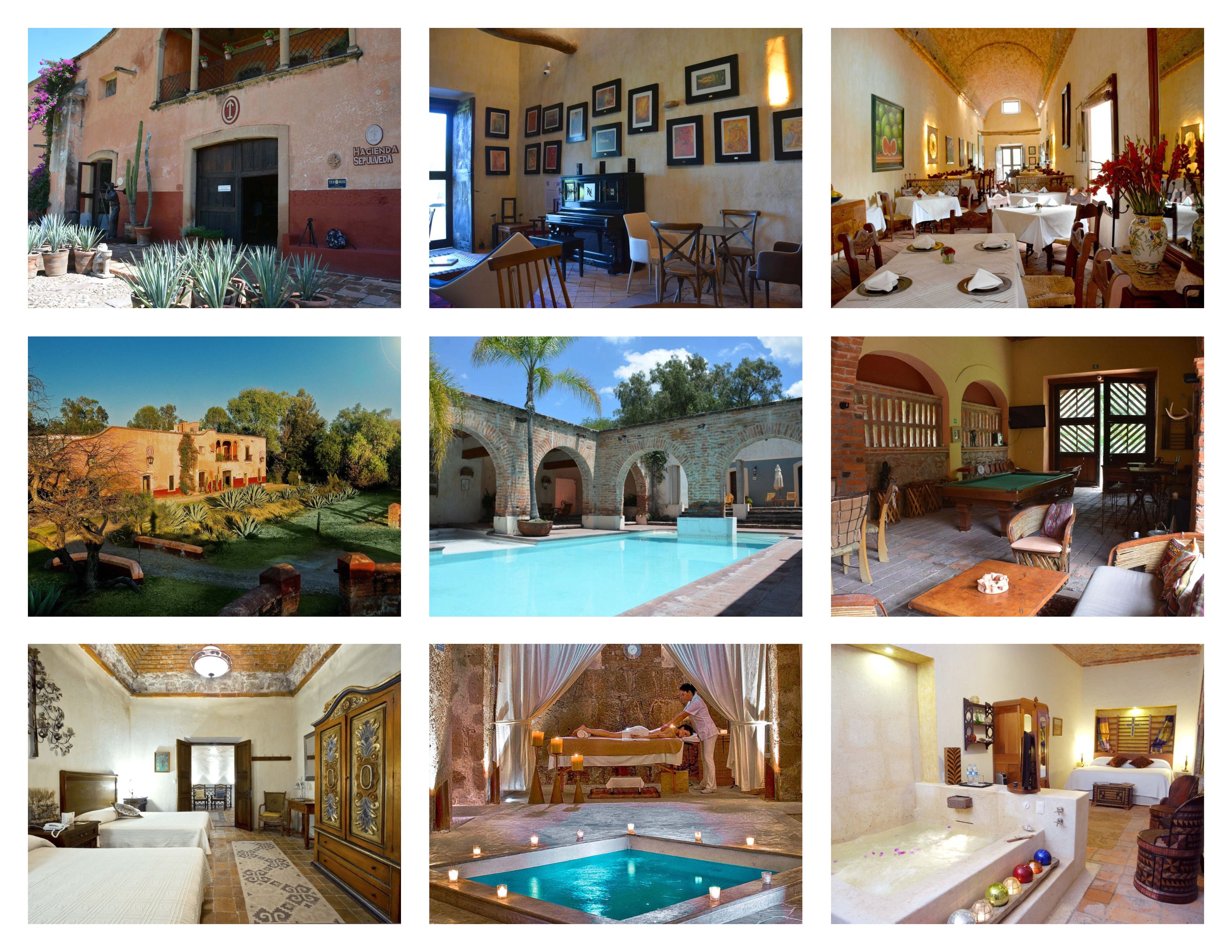 U verblijft bij de centre based paardrijvakantie in Hacienda Sepulveda, een viersterrenhotel met alle luxe en in Mexicaanse stijl. Er zijn 23 schitterende kamers/badkamers met toiletartikelen en badjassen, alle met flat-screen televisie/satelliet ontvangst, gratis WiFi & koffie/theefaciliteiten. Er is een full-service spa, voor massages, body treatments en facials, een buiten zwembad en een sauna.