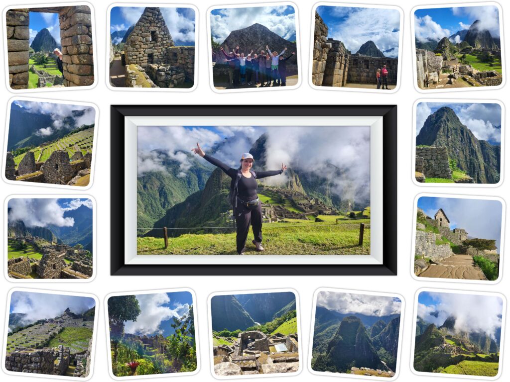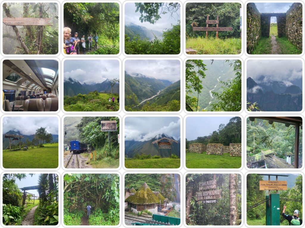 Vanochtend om 7 gingen we verder te voet over de Inca trail naar Machu Picchu waar we gisteren de eerste kilometer van gedaan hadden naar onze lodge. Dat was even ploeteren 700 meter omhoog bij hoge luchtvochtigheid zonder paarden. Cloud forest ervaar ik als mooiste stuk natuur dat ik gezien heb en op de camera is het erg lastig vast te leggen. Boven aan de berg lopen we over de pas en dan stoppen we bij Inca ruïnes waarvan men denkt dat dit een tempel is gelieerd aan machu picchu. Foto's 15 t/'m 17. Op dat moment is het nog erg bewolkt maar na even wachten kunnen we met een verrekijker Machu Picchu althans de achterkant zien liggen. We continueren de tocht en komen steeds meer in de jungle terecht. Voor de lunch stoppen we bij een boerderij waar we heerlijk eten krijgen avocado pastei gevolgd door verse vis en een gecarmeliseerde banaan als nagerecht wellicht het lekkerste diner op de tocht. Vanuit de boerderij hebben we een prachtig uitzicht op Machu Picchu. Na de lunch begint de helse afdaling gedurende de regen. De klei is erg glad smalle tracks met weet ik hoeveel bochten en rollende stenen. De rest heeft wandelstok(ken) (iets met last minute deze trip bedenken) maar desalniettemin kom ik de 1200 meter naar onder naar de rivier. Daar wacht ons een mooie touwbrug waarbij ik meteen aan mijn vrienden met hoogtevrees moest denken. Aangeraden is niet met meer dan 3 man tegelijk over de brug 🤣🙈 Nog een half uur lopen en dan komen we doorweekt ondanks regenkleding aan bij het treinstation in een dorpje dat Intihuatana heet. We waren bijna 6 uur onderweg voor 11 km. We zijn 700 meter gestegen in 4 km en 1200 meter gedaald in 3,5 km. De laatste 10 km lopen langs het spoor de reisorganisatie waar ik mee reis wil echter dat we met de trein gaan aangezien ze ook niet verzekerd zijn als we langs het spoor lopen. Nou ik vond het wel best zo en een mooie trein waarbij we alles net zo goed zagen. We verblijven hier in een super luxe hotel inca terra met ook weer een prachtig uitzicht zie de laatste foto's. Morgen daadwerkelijk bezoek Machu Picchu en dan een lange tocht per trein en auto terug naar Cusco.