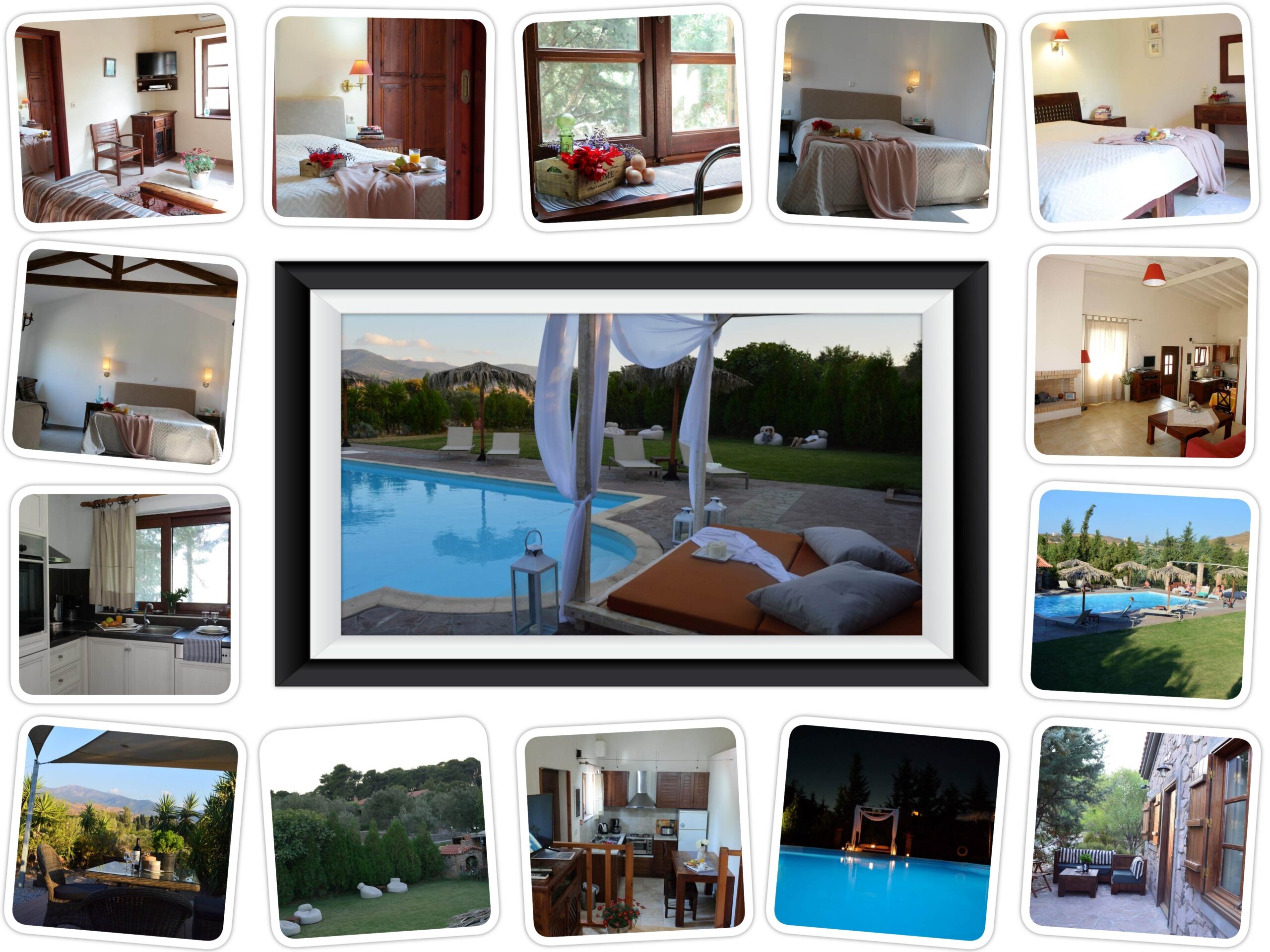 Het complex heeft 8 vrijstaande huizen met knusse privé terassen. De huizen bieden plaats aan 2 tot 4 personen. De stenen muren met houten interieur geven een traditionele touch aan de modern gebouwde gebouwen met high speed Wifi in het het hele huis, een kleine maar goed geoutilleerde keuken met oven, koffiefaciliteiten, broodrooster, afwasmachine. Sommige huizen hebben tevens een open haard voor de koele avonden. Er is altijd iemand van het personeel aanwezig indien er iets zou zijn.